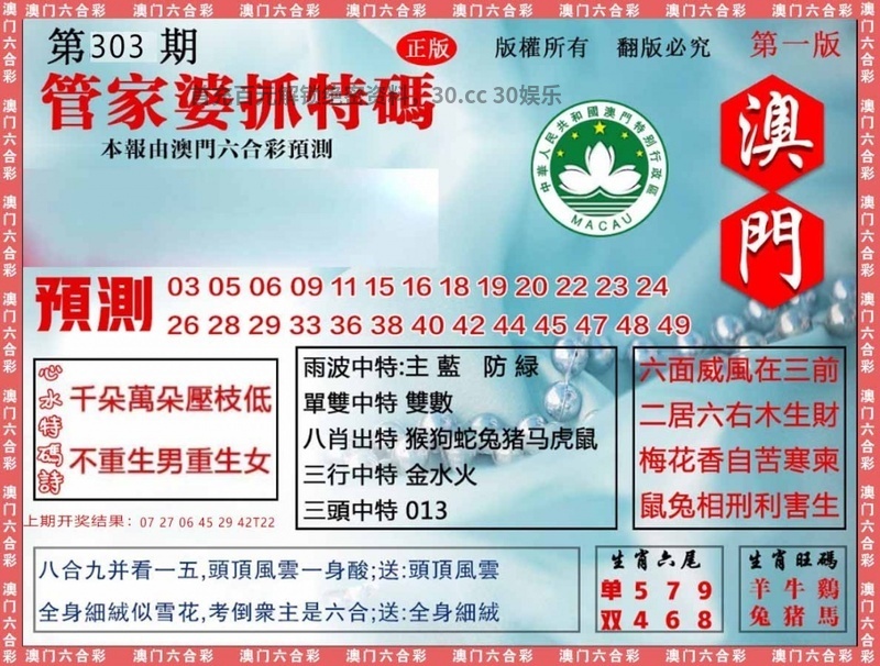 | 302期:🌴三头中特🌴【0-2-3头】开:猴22中 |