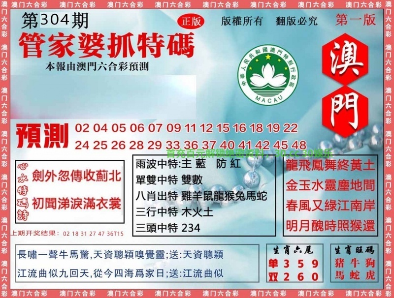 | 304期:🌴三头中特🌴【2-3-4头】开:马48中 |