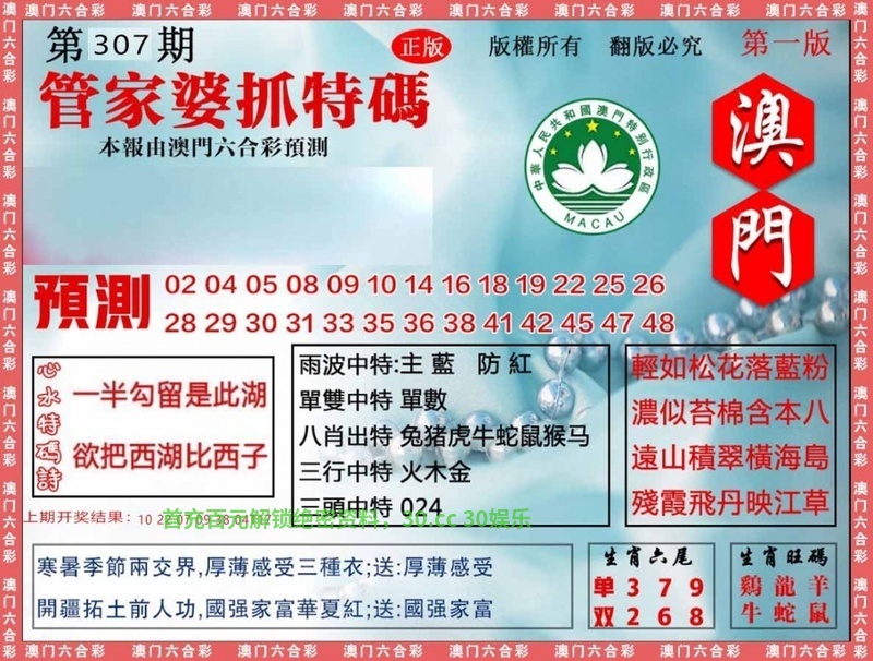 | 308期 | 0 2 6 9 尾 | 开發00 |